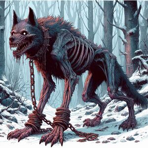 - A thin and rotting figure with the head of a hairless wolf.