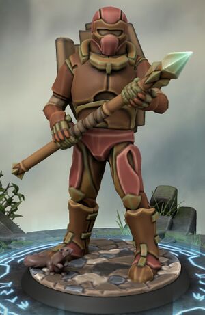 Twenty is a 6'3 wooden robot. They wear no clothes or armor because such things are unnecessary for them; this shows that their body is made from brown and reddish segments of smoothed tree bark. Twenty's face bears no traditional eyes or mouth; rather, she has a visor-like carving that allows her visual processing unit to view her surroundings. Her mouth is a speaker component that projects a relatively feminine voice, though they are capable of changing tones if desired. Their chest segment can open up to reveal a burning yellow flame that is their power source. They bear a thick, medium wooden shield on their back because they needed something to watch their back after their fellow sentries fell with the rest of Calian. Twenty's appearance is not special; there were other almost identical sentries before Calian drowned and took the others with it.