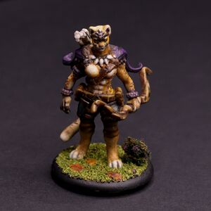 Dancer of the Boreal Valley is built for speed and stealth. Her tall and slender build understates her surprising strength and athletic ability acquired through a lifetime of honing her abilities as a truly skilled hunter. The purple cloak she wears has endured through countless battles with the beasts of the north and holds a certain sentimental value to her. As do the trophy claws around her neck. Having a natural camouflage of leopard-like fur, it is easy for her to go unseen in the dense forest canopies of Isonhound. Those lucky enough to have witnessed her fighting prowess speak of her moving with both intense purpose and effortless grace, earning her the nickname of "Dancer" amongst her clientele.