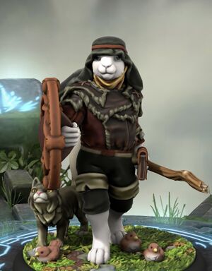 Watcher is a Harengon with white fur that has brown spots--these spots are not visible due to the clothing he wears. He has glassy black eyes that always seem to allude to some sort of mystery. His long ears are usually covered by a dark green shepherd's headdress. He also wears reddish-brown armor made of fake leather that is covered by layered burgundy cloth and simple green trousers. Watcher never wears shoes as he sees no need for them and would have little luck finding any that fit Harengon feet. The clothes he does have are simplistic, but clearly well-made. There's also a faux-leather satchel fastened to his trousers: he keeps trinkets of questionable significance inside it.